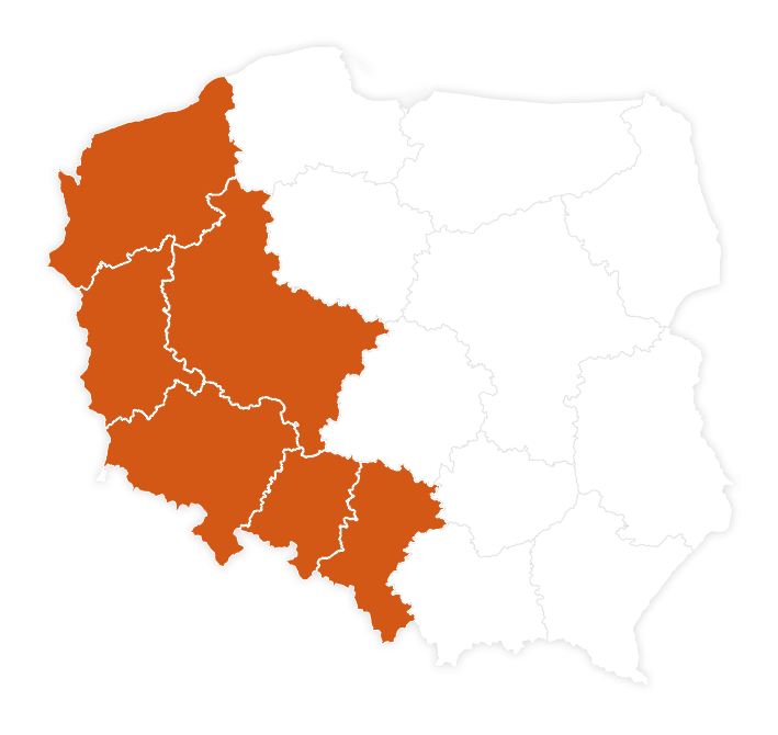 śląskie, opolskie, dolnośląskie, lubuskie, zachodniopomorskie, wielkopolskie