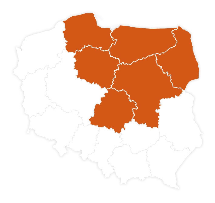 łódzkie, pomorskie, kujawsko-pomorskie, mazowieckie, podlaskie, warmińsko-mazurskie